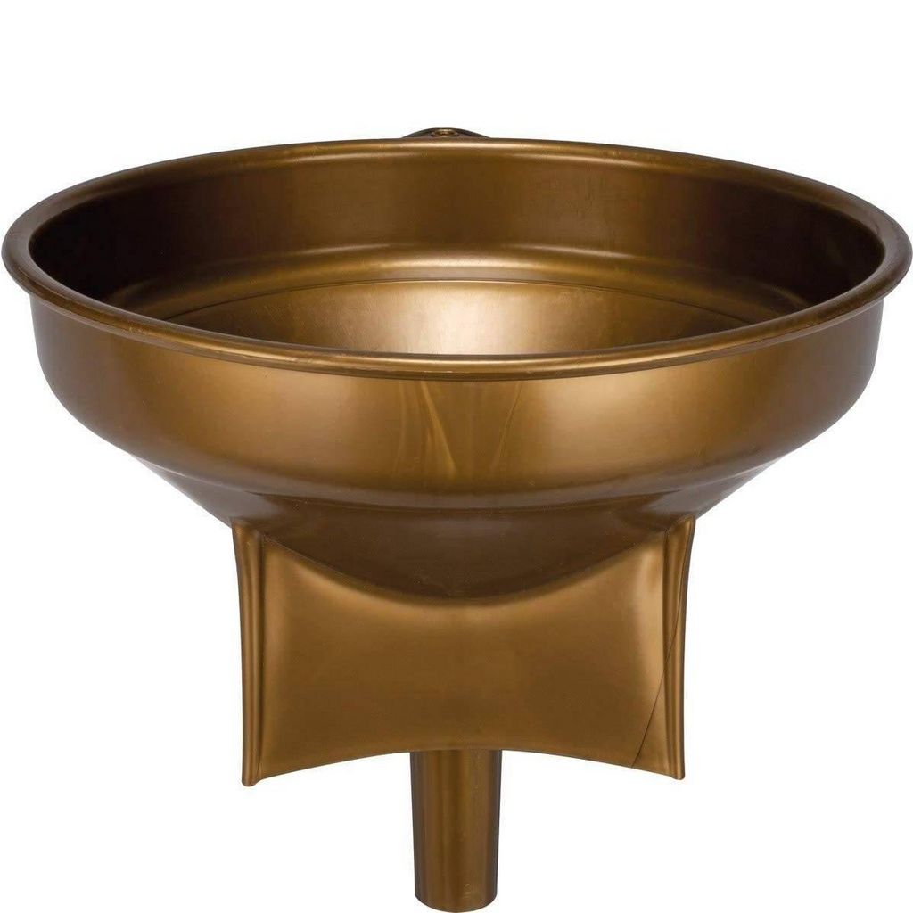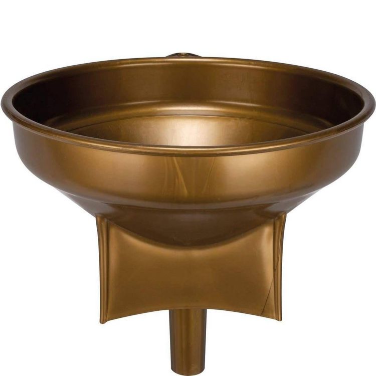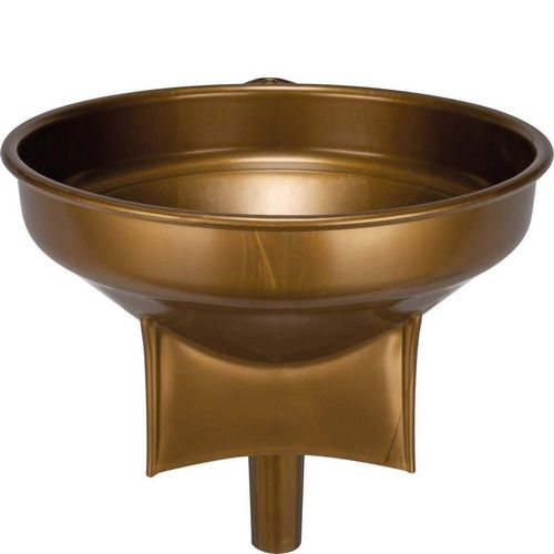 En plastique de couleur dorée, l'entonnoir est conçu pour le contact alimentaire et son socle correspond à la surface des fûts, tonneaux et barriques.