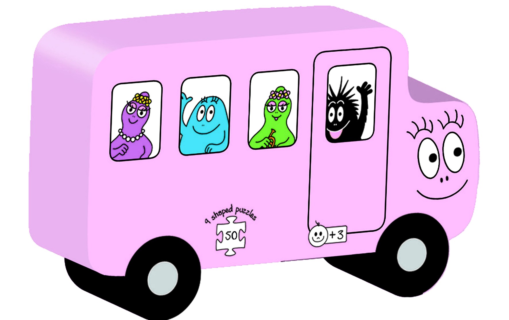 Découvre les 9 puzzles véhicules transformés par les Barbapapa de chez Dujardin dans une boîte aux formes d'un bus !