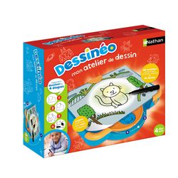 Contenu de la boîte :- 1 pupitre lumineux avec poignée- 1 roue- 30 disques-modèles transparents- 1 feutre noir- 10 planches décor A4Fonctionne avec 4 piles de 1.5 V LR6 (non fournies).A partir de 4 ans. Age minimum : 4 ans