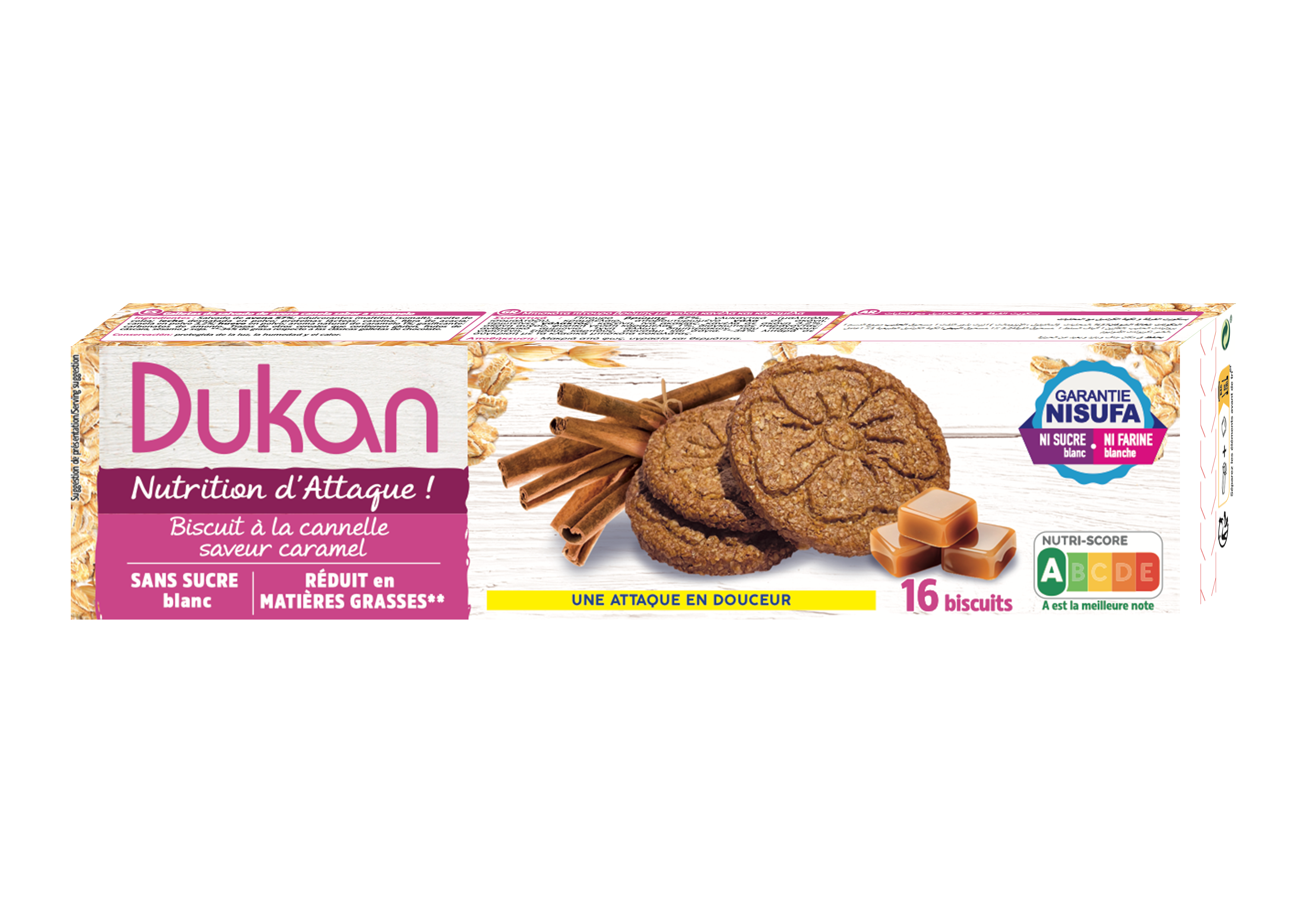 Biscuits au son d'avoine avec édulcorant, cannelle et saveur caramel