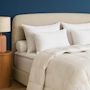 Leur enveloppe en sergé 100 % coton traité antiacariens, garantit une bonne respirabilité pour des nuits plus saines. Le passepoil blanc souligne la qualité des finitions.