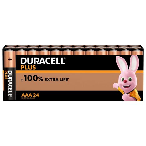Lot de 24 piles duracell plus 100 % AAA panière