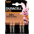 Duracell Plus, lot de 4 piles alcalines type AAA 1,5 Volts, LR03 Tout le monde connaît l'endurance du lapin Duracell ! Les piles Duracell Plus AAA offrent une puissance fiable et longue durée pour alimenter tous vos appareils jusqu'à 50% plus longtemps*. Disponibles aux formats AA, AAA, C, D, 4,5V et 9V, les piles Duracell Plus bénéficient du revêtement Superior Nylon qui évite les coulures et protège les appareils préférés de toute votre famille tels que les lampes torches, les télécommandes, les pendules, les jouets, les consoles de jeux, et plus encore... La technologie Duralock permet de conserver toute l’énergie de vos piles Duracell jusqu'à 10 ans dans leur emballage**. Depuis plus de 50 ans, la marque Duracell et son célèbre lapin proposent une large gamme de piles hautes performances. Duracell fut même la première pile à être allée sur la lune en participant à la mission Apollo 11 en 1969 (*performance de longévité comparée à la Durée Moyenne Minimum du test standard IEC 2015 pour les piles de format AAA pour les Jouets Motorisés. Les résultats peuvent varier suivant l’appareil et l’utilisation - www.iec.ch / ** dans des conditions normales de stockage).