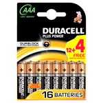 Duracell Plus, lot de 12+4 piles alcalines type AAA 1,5 Volts, LR03 Tout le monde connait l'endurance du lapin Duracell ! Les piles Duracell Plus AAA offrent une puissance fiable et longue durée pour alimenter tous vos appareils jusqu'à 50% plus longtemps*. Disponibles aux formats AA, AAA, C, D, 4,5V et 9V, les piles Duracell Plus bénéficient du revêtement Superior Nylon qui évite les coulures et protège les appareils préférés de toute votre famille tels que les lampes torches, les télécommandes, les pendules, les jouets, les consoles de jeux, et plus encore... La technologie Duralock permet de conserver toute l’énergie de vos piles Duracell jusqu'à 10 ans dans leur emballage**. Depuis plus de 50 ans, la marque Duracell et son célèbre lapin proposent une large gamme de piles hautes performances. Duracell fut même la première pile à être allée sur la lune en participant à la mission Apollo 11 en 1969 (*performance de longévité comparée à la Durée Moyenne Minimum du test standard IEC 2015 pour les piles de format AAA pour les Jouets Motorisés. Les résultats peuvent varier suivant l’appareil et l’utilisation - www.iec.ch / ** dans des conditions normales de stockage).