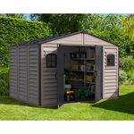 Abri de Jardin PVC DarkGrey 10 x 8 (3,20 x 2,40 x 2,31 m)Abri de jardin premium PVC 3,25 x 2,47 m (8,05 m2)Hauteur totale 2,34 m - Hauteur des murs 1,83 m Tall walk in Shed Hauteur à l'intérieur de l'abri: 2,31 mUtilisation pour rangements, outils de jardin, tondeuses autoportées, vélos&hellip,Pa