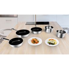 Batterie de cuisine 5 pièces inox tous feux dont induction revêtement anti adhésif