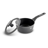 Casserole en aluminium forgé, un matériau résistant aux chocs, à l'usure et aux températures élevées qui offre une répartition très homogène de la chaleur. Compatible tous feux dont induction. Revêtement anti-adhérent pour un nettoyage facilité. Poignée en bakélite agréable au toucher. Casserole diamètre 16 cm, livrée avec un couvercle en verre à bord silicone pour un maintien optimal de la chaleur. Casserole et couvercle diamètre 20 cm.