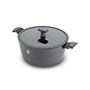 Faitout en aluminium forgé, un matériau résistant aux chocs, à l'usure et aux températures élevées qui offre une répartition très homogène de la chaleur. Compatible tous feux dont induction. Revêtement anti-adhérent pour un nettoyage facilité. Poignées en bakélite agréable au toucher. Faitout diamètre 28 cm, livré avec un couvercle en verre à bord silicone pour un maintien optimal de la chaleur.