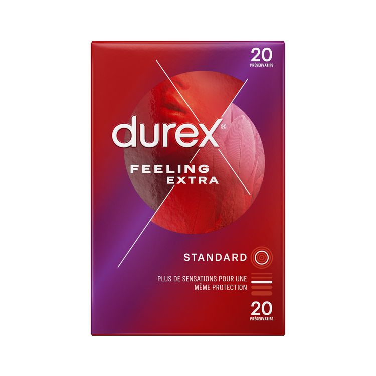 Les préservatifs Durex Feeling Extra sont fins et extra lubrifiés, leurs formes profilée Pleasure Fit TM ainsi que leurs largeurs nominales de 56 mm vous procureront des sensations intenses pour vous sentir proche de votre partenaire. Si vous n’aimez pas la sensation des préservatifs plus épais, essayez nos préservatifs Feeling Extra et vous expérimenterez des sensations différentes.