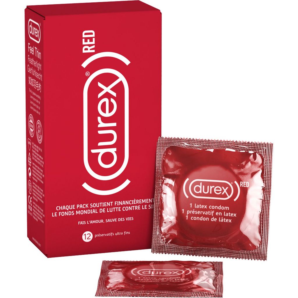 Durex Préservatifs RED x12 Préservatifs fins pour encore plus de sensations Participez à la lutte contre le sida en Afrique Disposant d’un réservoir pour plus de confort Préservatifs transparents en latex de caoutchouc naturel Diamètre moyen de 56 mm Le préservatif RED participe à une démarche solidaire. Pour chaque pack acheté, Durex reverse une part au Fonds Mondial, une association de lutte contre le VIH.