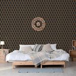 Ce papier peint durable presente un motif geometrique avec un bel effet 3D grace aux differents tons de couleur et d'ombres. Il est de couleur noir et dore. Il peut meme etre retire a sec sans endommager votre mur.