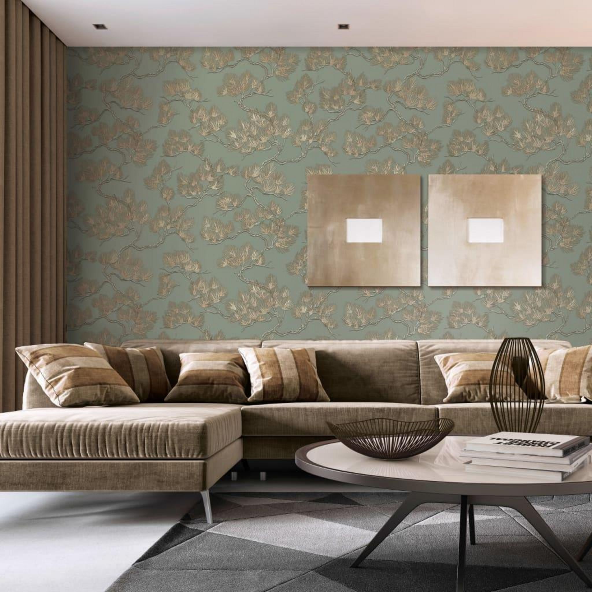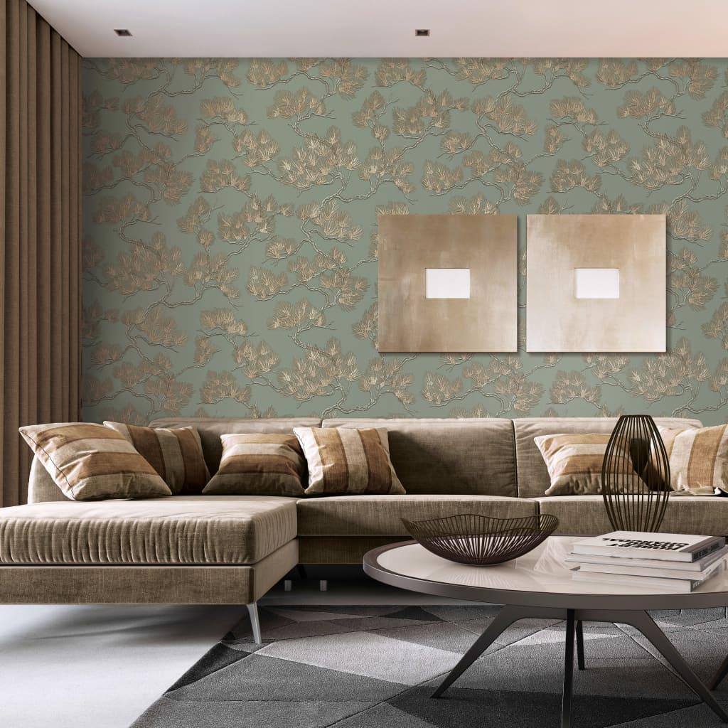 DUTCH WALLCOVERINGS Papier peint Motif avec pins Vert