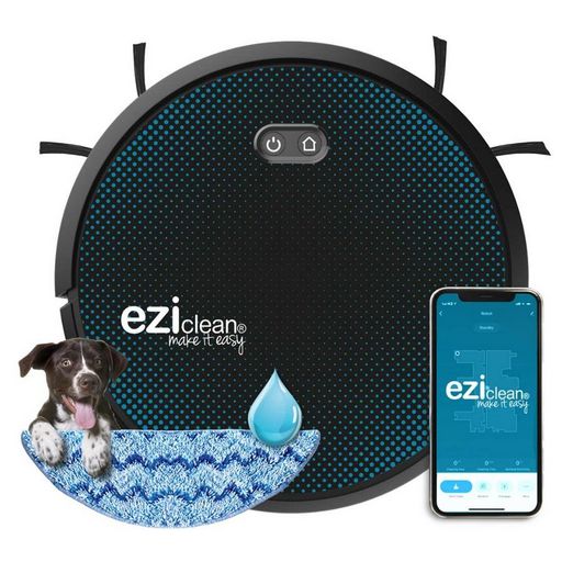 E.ziclean AQUACONNECTX550 L'aspirateur-laveur robot E.ziclean AQUACONNECTX550 aspire et passe la serpillère à votre place. Cet aspirateur est doté de la technologie Navig+ qui effectue un schéma précis de la pièce pour une optimisation des déplacements quel que soit l?agencement de votre intérieur et les obstacles rencontrés. Également équipé de 16 détecteurs d?obstacles et de capteurs de vides, il détecte les escaliers et autres obstacles pour un nettoyage parfaitement autonome. Moteur nouvelle génération à technologie Magnetik Performance : offre une aspiration en moyenne 2,5 plus puissante que les autres robots du marché. Application Eziclean Connect, Virtual 5 pour un contrôle de l'aspirateur robot laveur via votre smartphone (affiche la surface parcourue, le temps écoulé, le pourcentage restant de la batterie, la puissance d'aspiration et le débit d'eau de l'appareil).
