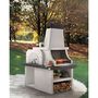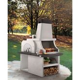 Grand combiné barbecue et four livré en kit d’assemblage. Plans de travail réalisés en Marmotech teinté dans la masse (mélange à base de granulats de marbre à haute résistance thermique et mécanique). La structure est en mélange de béton et matériaux réfractaires. Le four à bois est entièrement en réfractaire (chambre de cuisson 77x65 cm) et est équipé de porte en acier inox avec thermomètre. Le barbecue est équipé de plaques foyères en réfractaire, hotte de protection en métal, grille de cuisson réglable sur 2 niveaux, matelas isolant à placer sous les plaques foyères. Livré avec kit de montage et de finition.