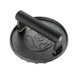 La presse à burger Gourmet-Easy en fonte robuste garantit une cuisson uniforme de la viande. Équipée d'une poignée ergonomique en silicone résistante à la chaleur, elle facilite le retournement sur le grill. Son design fonctionnel et sa finition en métal assurent une grande longévité. Parfaite pour