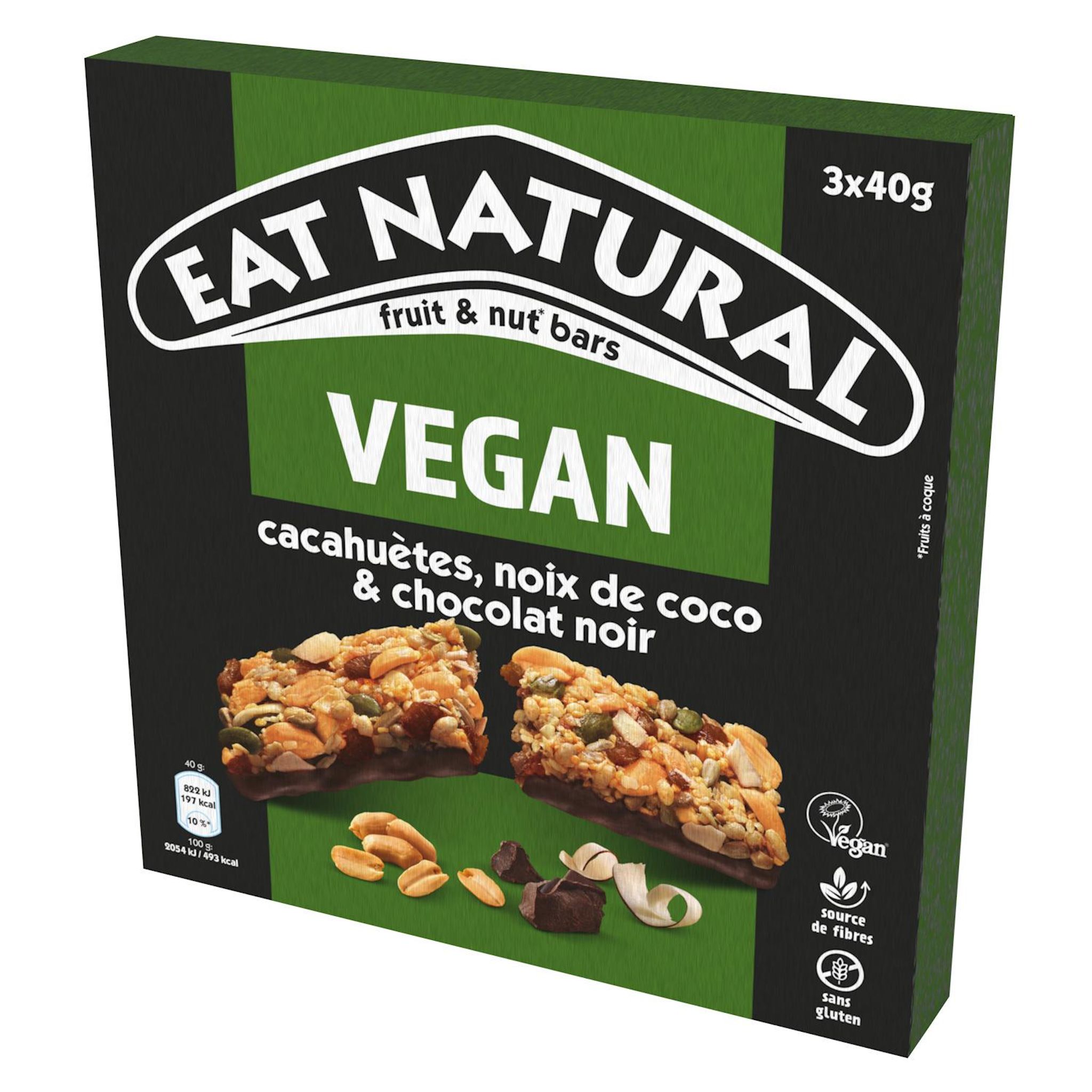 Qu'entendons-nous par 'Eat Natural' ? Il serait évidemment faux de prétendre que tout ce qui se trouve dans nos barres pousse simplement sur les arbres. Comme vous vous en doutez, certains ingrédients doivent être nettoyés, séchés, torréfiés et parfois transformés. Nous pensons simplement que moins nous les transformons, meilleur sera leur goût. C'est pourquoi nous n'ajoutons ni colorants, ni conservateurs ou arômes artificiels.Découvrez nos barres Eat Natural ! Un concentré de plaisirs simples.