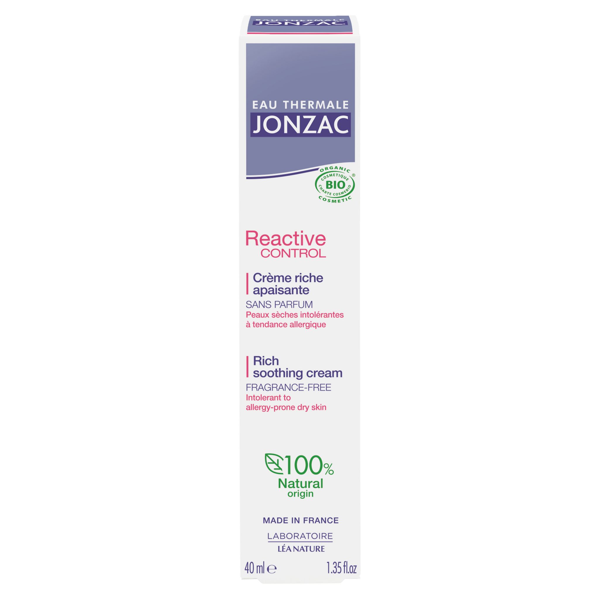 Reactive Control Crème riche apaisante bio pour peaux sèches intolérantes à tendance allergique