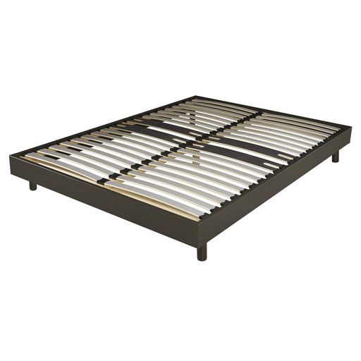 Le sommier en kit Delkit EBAC possède 20 lattes bois dont 2 en zone lombaire afin d'atténuer les points de compression et 2 en zone épaules plus creuses pour le confort. Très pratique, il est livré en kit, idéal pour le transport, les déménagements, et les accès étroits. Finition effet bois coloris chêne grisé.. Livré en carton, pieds inclus