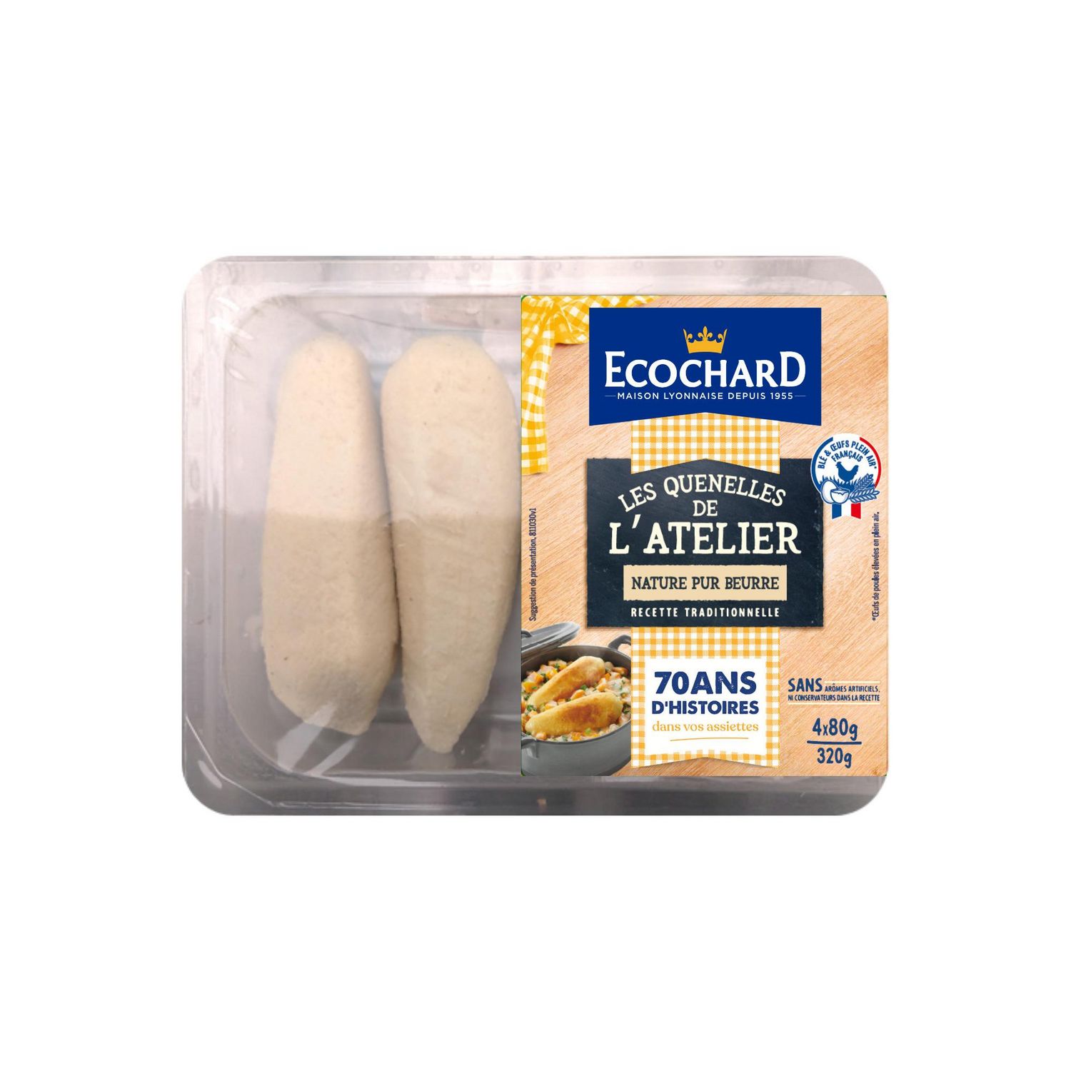 Ingrédients 100% français, œufs de poules élevées en plein air sans colorant*, arôme artificiel ni conservateur dans la recette. 30 min de cuisson pour des quenelles moelleuses et bien gonflées