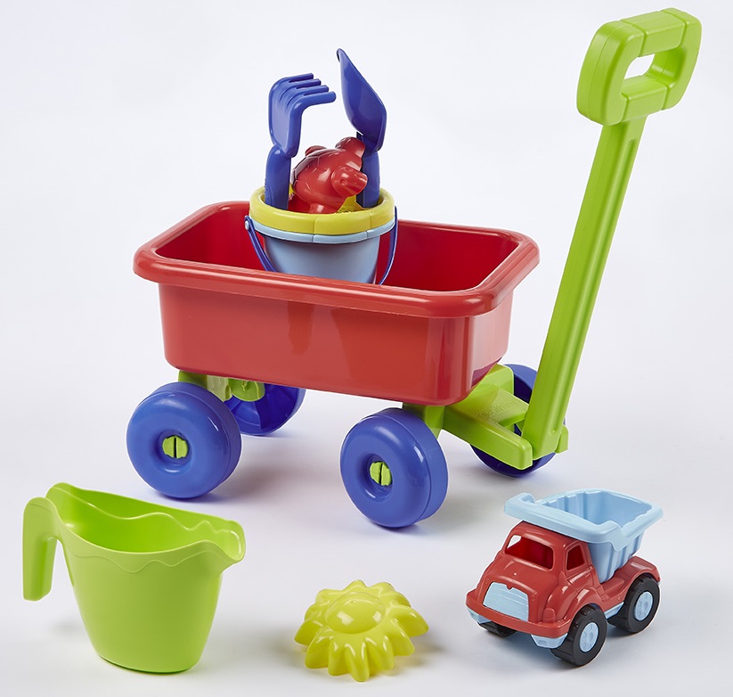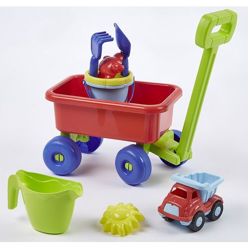 - 1 chariot garni d'1 seau, 1 pelle, 1 râteau, 1 tamis, 1 pichet, 1 camion, 2 moules