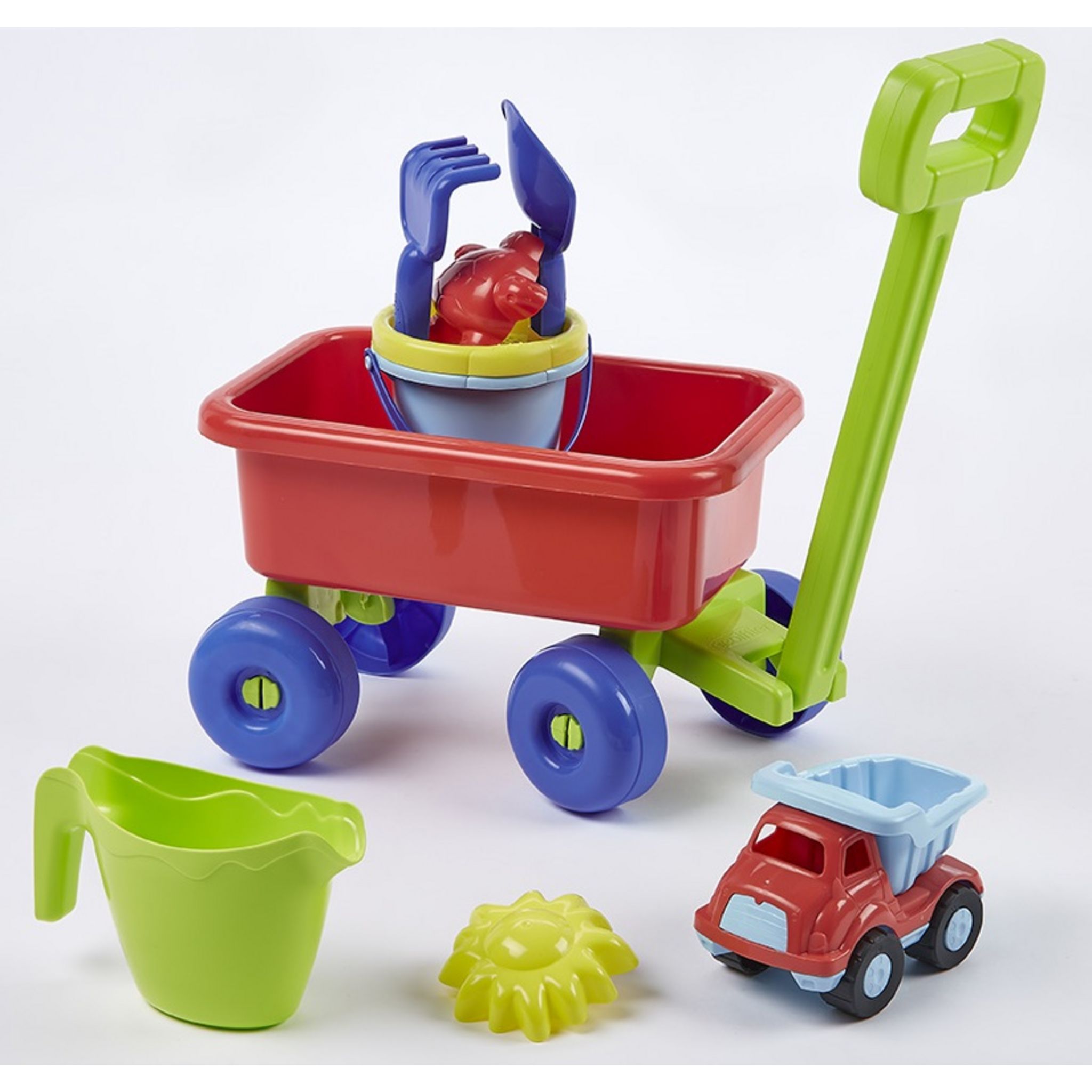 Avec ses 6 accessoires colorés, ce set évite les oublis de matériel. Le chariot se transforme en espace de rangement pratique pour transporter tous les jouets en un seul voyage, même sur les plages les plus éloignées.