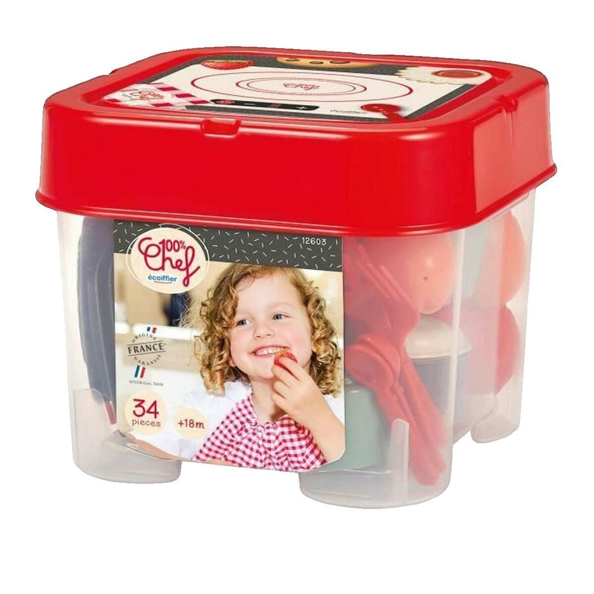 Le Coffret Dinette Ecoiffier est un ensemble complet de 34 pièces en plastique de haute qualité, léger et durable, conçu pour stimuler l'imagination des enfants dès 18 mois. Ce jeu d'imitation permet aux enfants de préparer et servir des repas, favorisant ainsi le développement des compétences socia