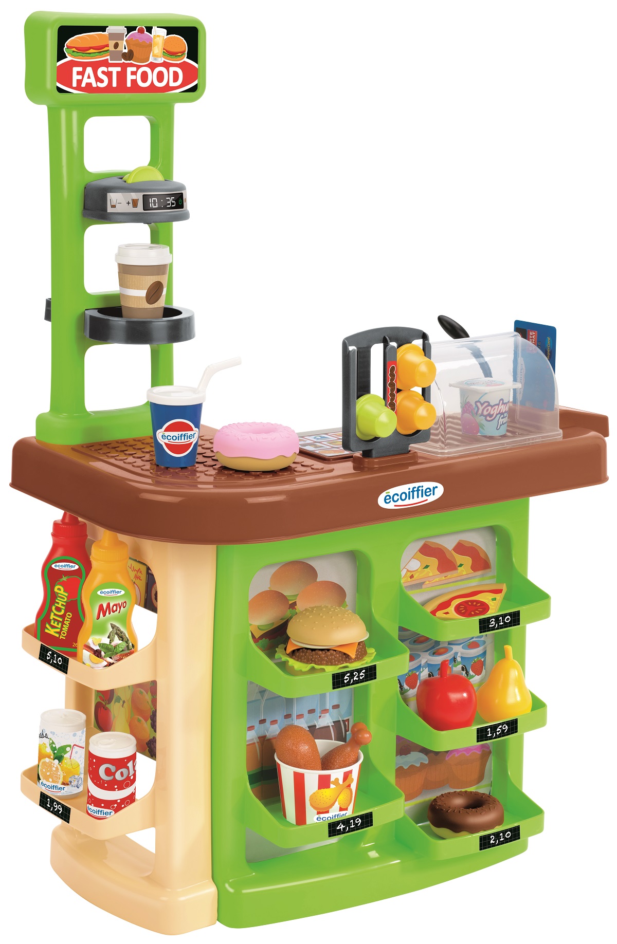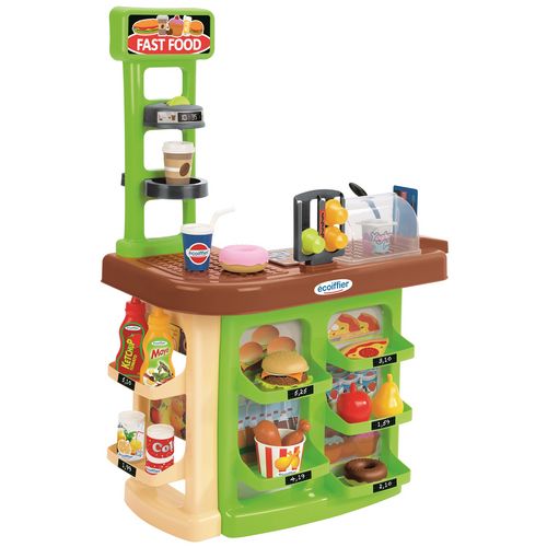 Le propre stand de restauration rapide de votre enfant ! À la carte : pizzas, burgers, cuisses de poulet, sodas, cafés, donuts... les clients auront le choix ! Pour régler l'addition, le paiement par carte bancaire est accepté grâce au terminal à la caisse. De quoi stimuler l'imagination de votre enfant !
