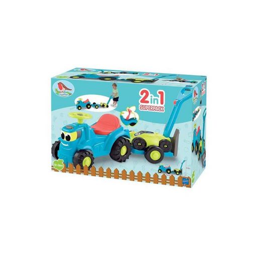 Ce porteur en forme de tracteur circule partout dans le jardin pour déposer la tondeuse dans le gazon. La remorque amovible possede une rampe arriere pour charger et décharger la tondeuse et une fois la rampe relevée, elle bloque la tondeuse sur la remorque. Tondeuse incluse. Recommandé de 12 a 36 mois. Origine France Garantie.