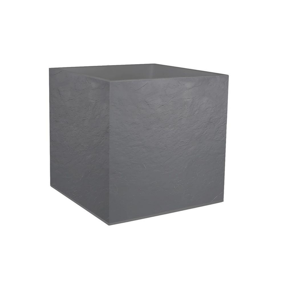 Jardinière carrée Volcania effet pierre 49,5 x 49,5 x 49,5 cm - 57 L - Gris galet - Eda
