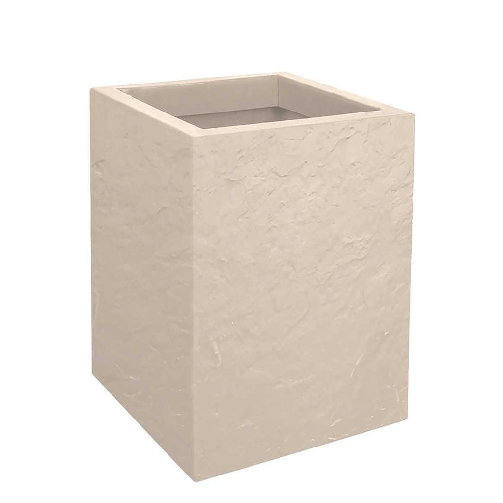 Jardinière carrée Volcania Up effet pierre 21 L - Beige calcaire - Eda
