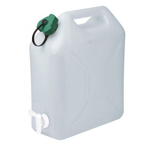 Bouchon simple et robinetJerrican extra fort 10 L Avec Bouchon simple + Robinet 1/4 de tour Dim. 29 x 15 x 35 cm - Label Origine France GarantieMatière principale: PlastiqueLitrage (en l): 10Bouchon doseur: NonFamille de couleur: Incolore / transparentUsage du produit: Transporter des liquides alime
