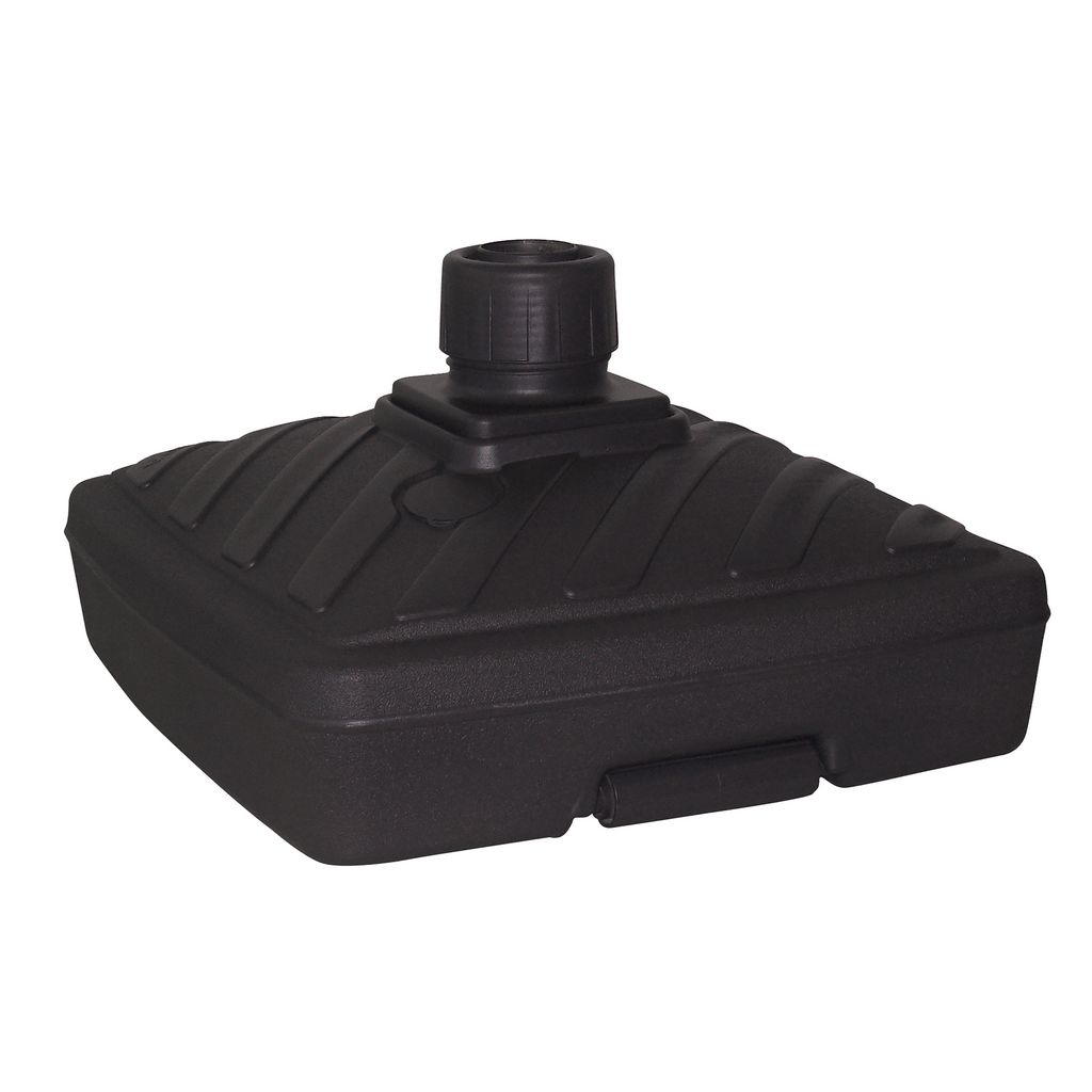 Pied de parasol en plastique à remplir. Peut contenir : 40 L d'eau ou 52 kg de sable. Dimensions : 56,5 x 56,5 x 31,5 cm. Convient pour parasol droit avec un mât de 38 à 56 mm. En plusieurs coloris