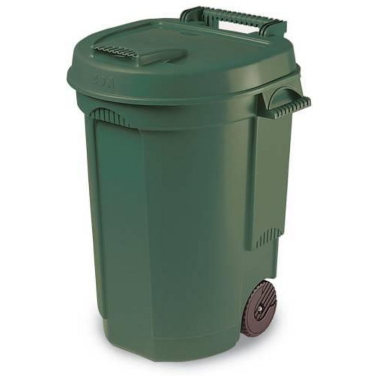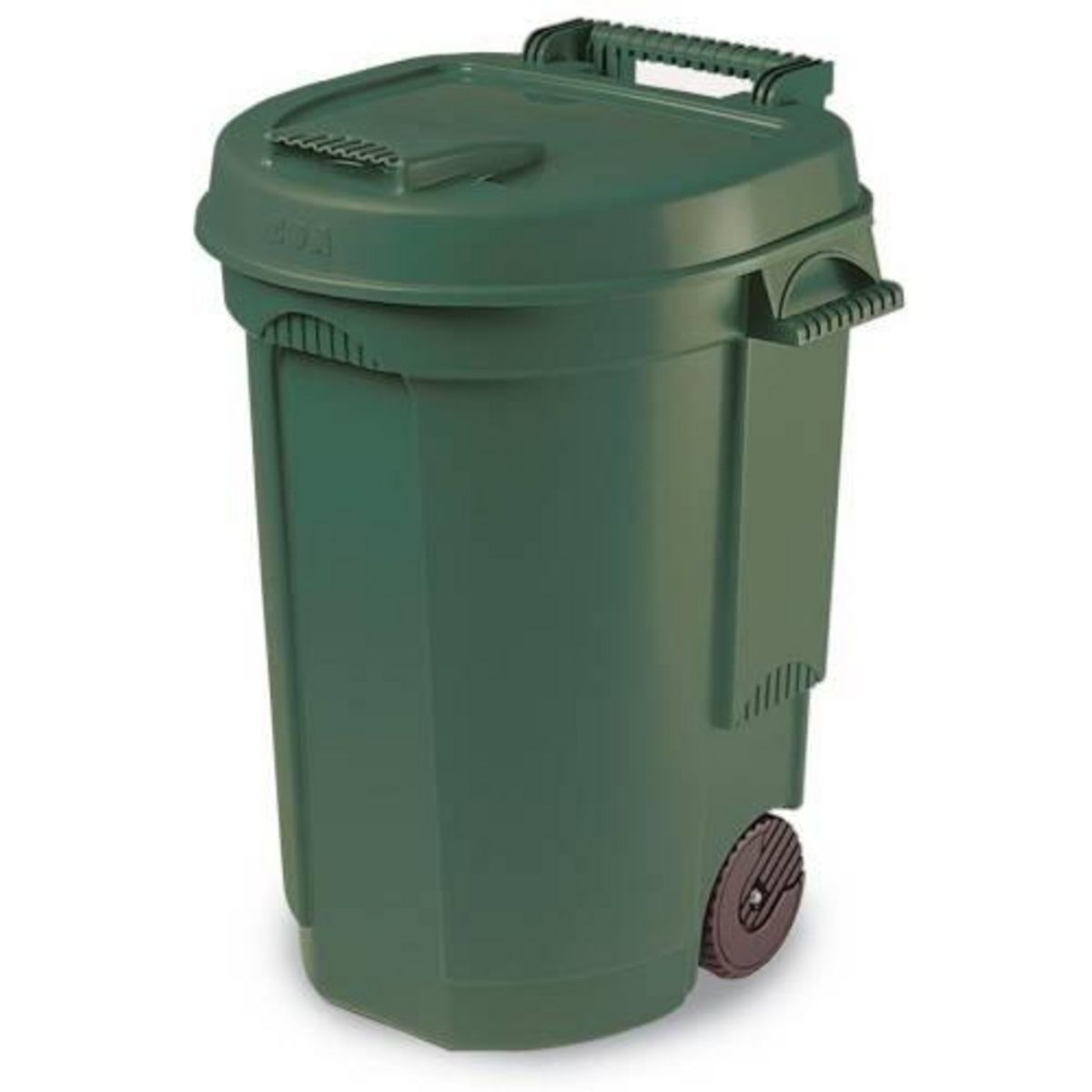 Poubelle 110 L à roulettes. Dimensions 550x580 mm. Hauteur 810 mm. En polyéthylène.