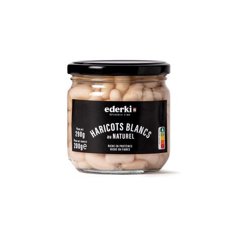 Haricots blancs, eau, sel, antioxydant : E223 (sulfites).