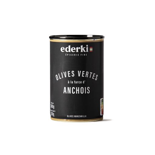 Retrouvez les saveurs du Pays Basque dans vos apéritifs avec nos olives vertes Manzanilla farcies aux anchois. Les olives sont soigneusement sélectionnées pour leur fermeté et pour leur forme régulière et oblongue.