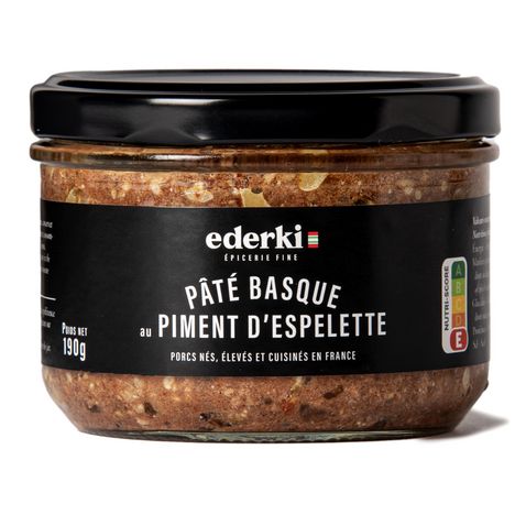 Ingrédients : "Foie de porc, goulat de porc, gras et maigre de porc, œuf, sel, piment d'Espelette en poudre AOP (0,6%), sucre, poivre.