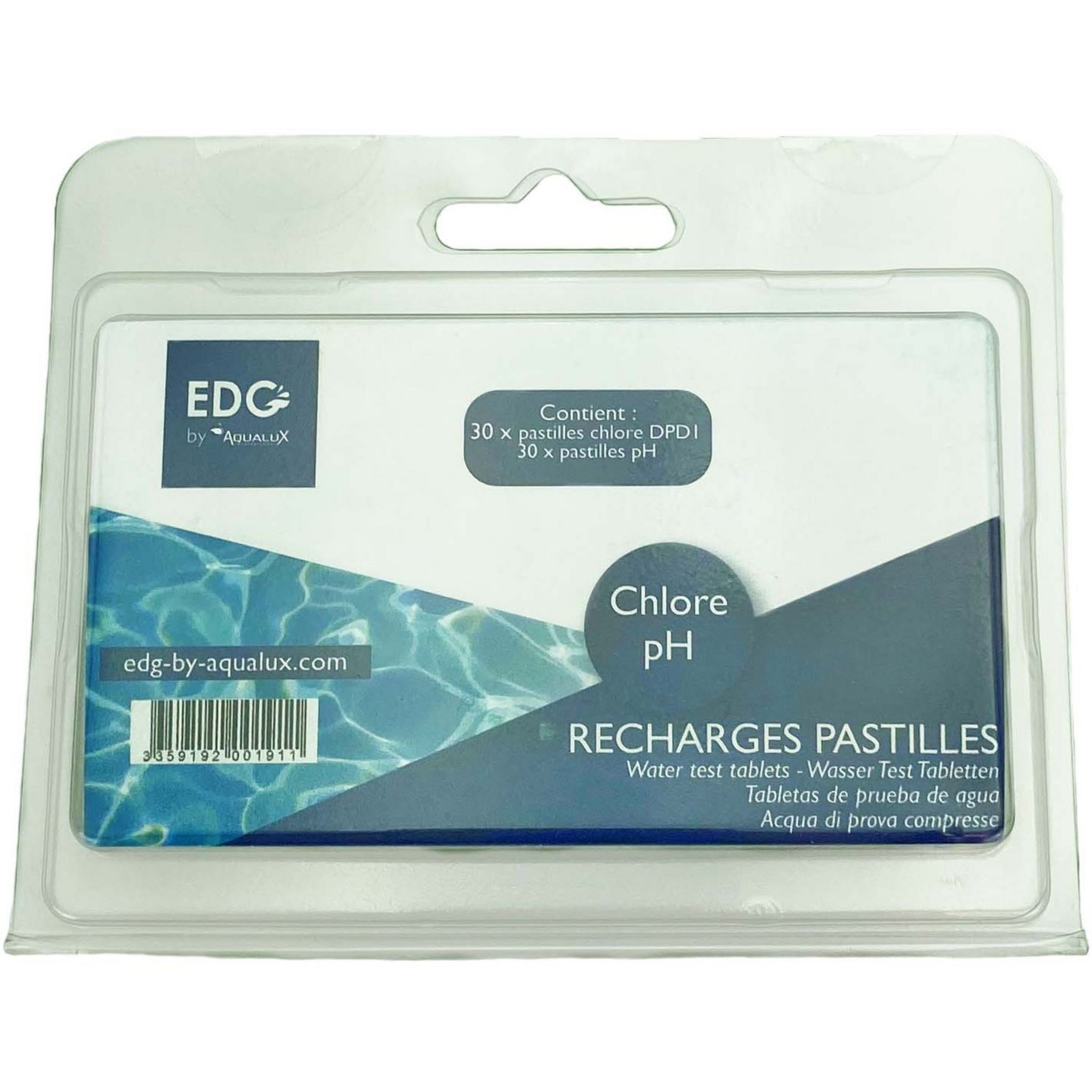 Recharges pastilles permettant d'analyser le pH et le taux de chlore dans l'eau de la piscine.