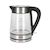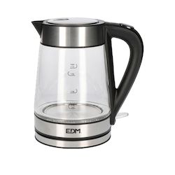 Cette bouilloire électrique en verre transparente de la marque edm modèle 8425998076578 offre une puissance réglable de 1850 à 2200 watts pour une ébullition rapide de l'eau. Elle dispose d'une capacité de 1,7 litre, adaptée aux familles. Son design moderne combine verre clair et acier inoxydable po