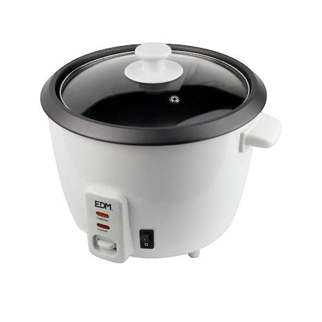 Découvrez le cuiseur à riz électrique Cuiseur RIZ 400 de la marque edm. Ce modèle blanc a une puissance de 400 watts et une capacité de 1 litre. Il propose deux fonctions : cuire le riz et le maintenir au chaud, idéales pour préparer des repas simples et rapides. Son bol antiadhésif et son couvercle en verre facilitent l'utilisation et le nettoyage. Le cuiseur est livré avec une spatule en plastique et un récipient gradué, parfait pour des portions individuelles ou en famille. Ce cuiseur à riz vous assure une cuisson stable et efficace dans votre cuisine.