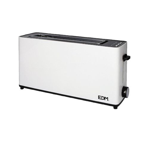 Découvrez le grille-pain EDM, conçu pour préparer des toasts uniformes et croustillants grâce à sa puissance de 900 watts. Il dispose d'une fente longue pouvant accueillir deux tranches de pain, avec 7 niveaux de brunissage pour ajuster le goût selon vos préférences. Son design minimaliste et moderne en couleur blanche s'intègre parfaitement dans votre cuisine. Ce grille-pain est équipé d'une fonction d'arrêt, d'une surface de toucher froid pour une manipulation sécurisée, ainsi qu'un plateau ramasse-miettes amovible facilitant son entretien. Sa construction en métal et acier inoxydable garantit robustesse et durabilité.