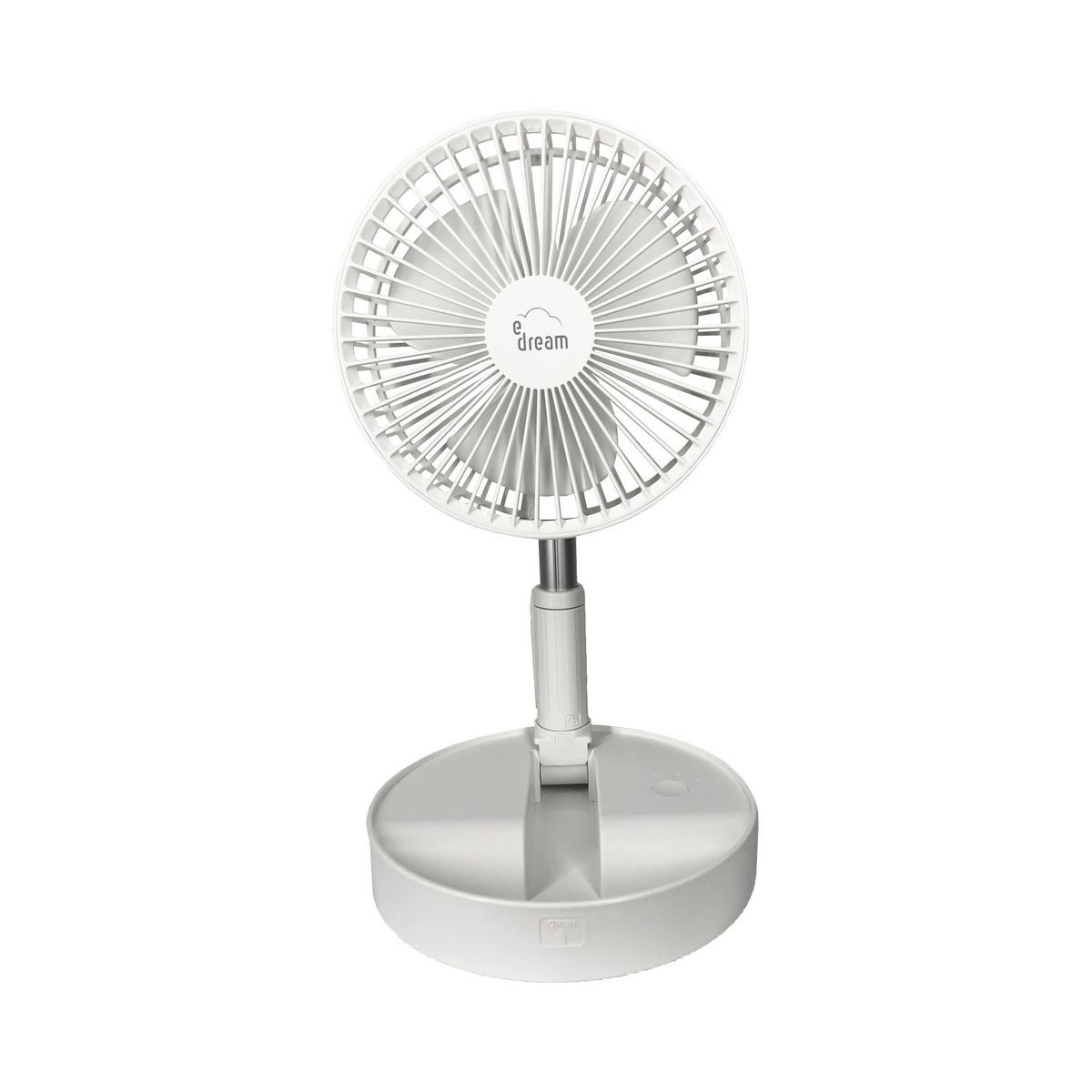 EDREAM est fier de vous présenter ce superbe ventilateur nomade V913. Pourquoi Nomade? Avec son autonomie de 24H, ce ventilateur sera votre meilleur ami cet été. Seulement 4h30 de recharge pour une utilisation optimale. 4 vitesses vous sont proposées afin d'adapter la puissance du souffle à vos besoins. L'atout de ce petit ventilateur, c'est qu'il ne l'est pas tant que ça, avec une hauteur réglable de 9,3cm à 97,5cm, vous pourrez switcher entre un ventilateur de table ou sur pied! Enfin, vous oublierez sa présence puisque celui ci ne fait que 40 dB lorsqu'il est en puissance maximum.