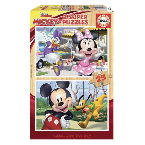 2 puzzles de 25 pièces haute qualité en bois, aux couleurs de Mickey et ses amis. ? De grandes pièces en bois, parfaitement finies, faciles r manipuler et r assembler. ? Des images plus attractives aux couleurs brillantes, rehaussées par une couche de vernis. ? Produit fabriqué avec des méthodes et