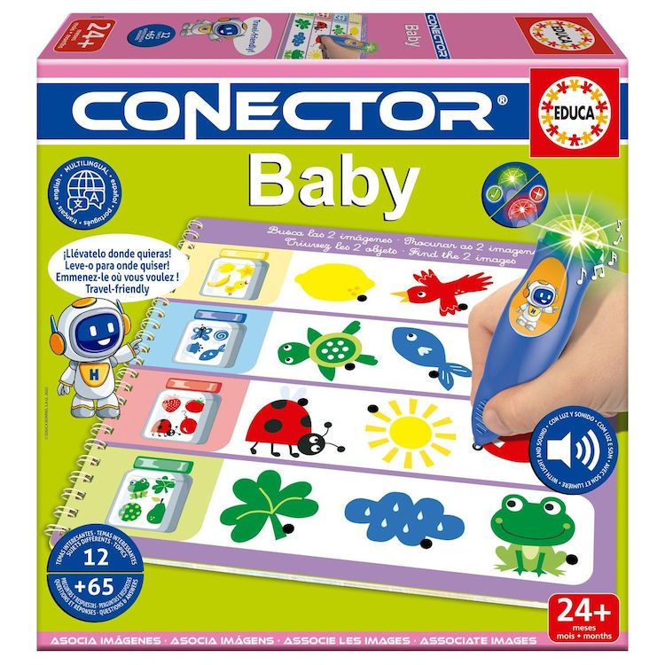 Nouveau BABY Conector en format livre avec stylo avec son et lumière. Jeu de questions-réponses pour les plus petits avec les thèmes les plus intéressants tels que : les couleurs, les formes, les silhouettes, les animaux, et bien d'autres encore.