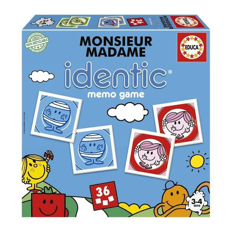 Jeu de mémoire enfant – Monsieur Madame – Identic – Educa