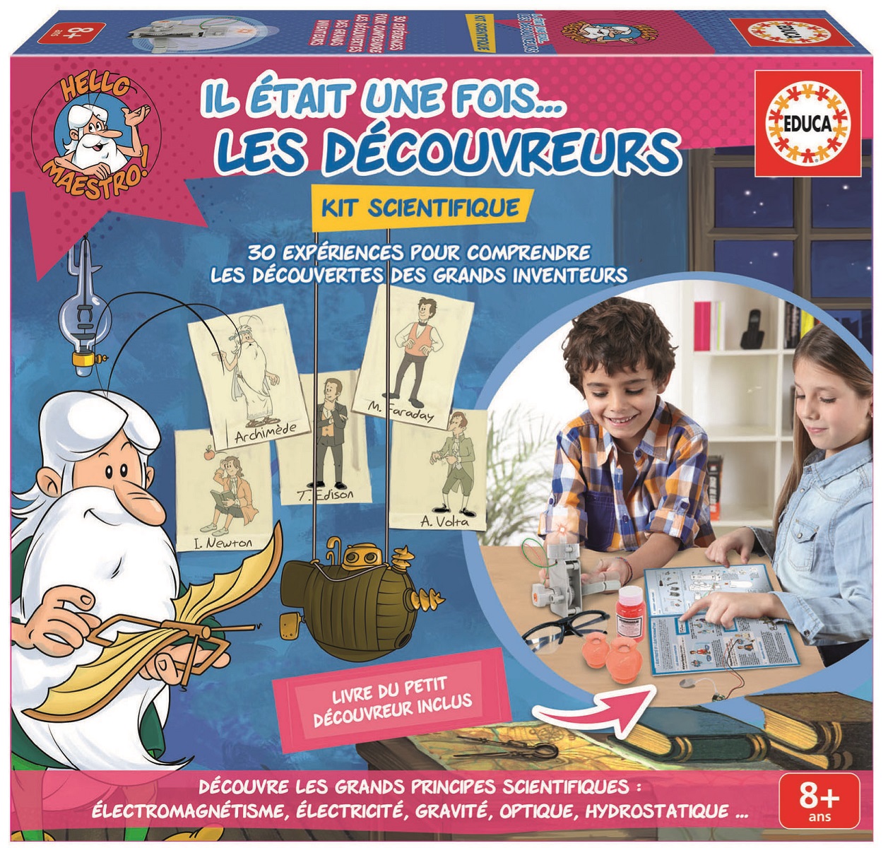 Il était une fois... Les découvreurs est le parfait petit kit scientifique pour votre enfant. Il découvrira les grands principes scientifiques tels que l'électromagnétisme, l'électricité, la gravité... et leurs inventeurs. Il pourra également réaliser jusqu'à 30 expériences scientifiques afin de mie