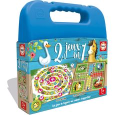 Découvre ta Malette 2 jeux en 1 et retrouves 2 grands classiques de jeux de société (les petits chevaux et le jeu de l’oie) dans une malette à emmener partout !