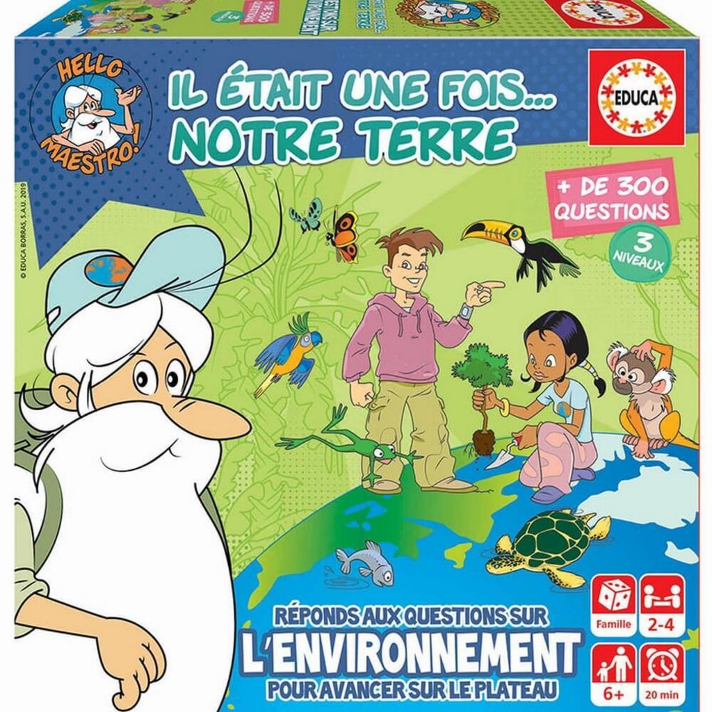 Le Mini Jeu Il etait une fois - Notre terre de la marque Educa est un mini jeu de plateau où vous répondrez à plus de 300 questions sur le thème de l'environnement. Il est adapté aux enfants de plus de 6 ans.