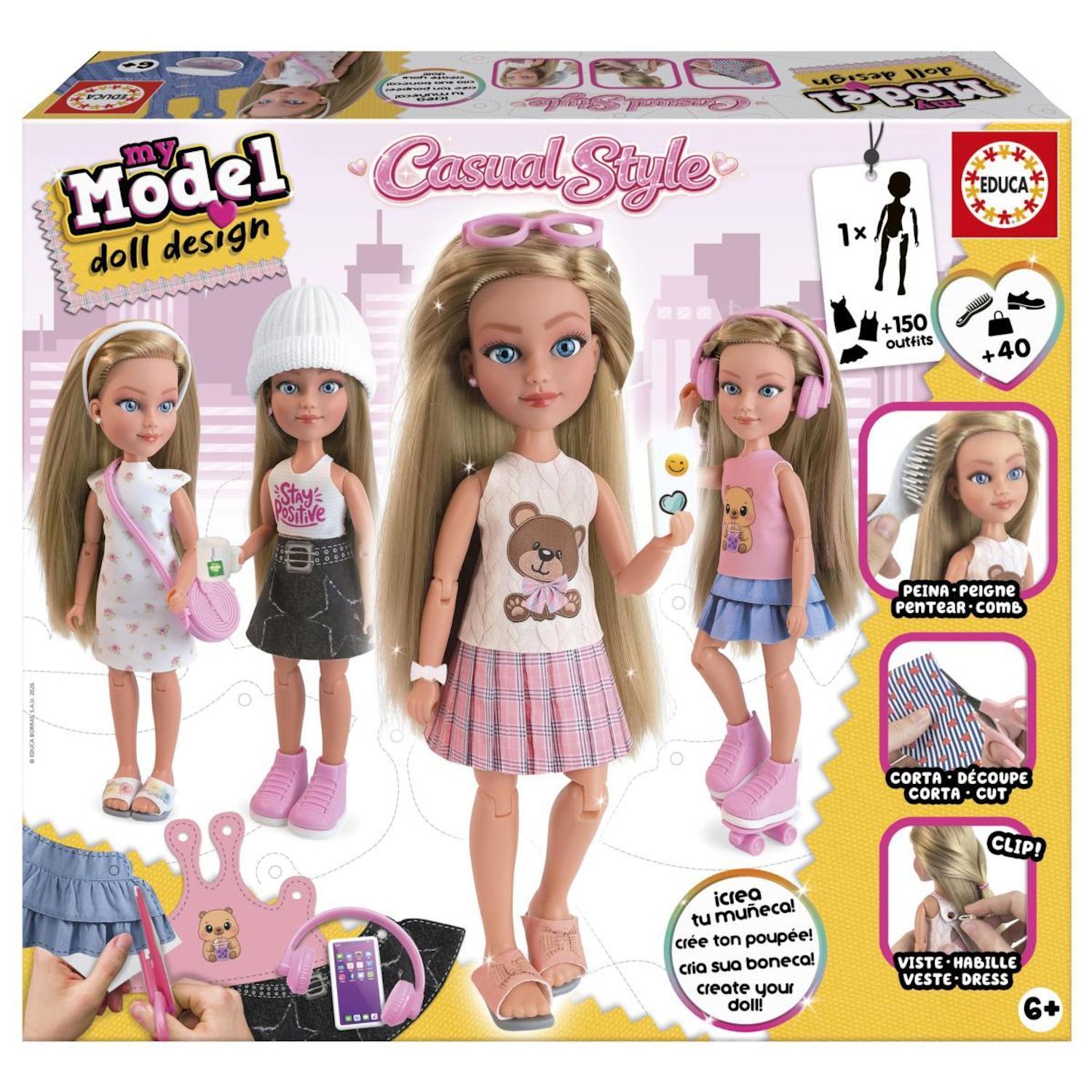 Devenez styliste professionnelle. Créez votre propre collection de vêtements et définissez le style unique de votre poupée grâce aux tissus à motifs inclus. Tête avec cheveux réalistes. Offre une expérience de jeu authentique permettant de laver, brosser et créer des coiffures spectaculaires.