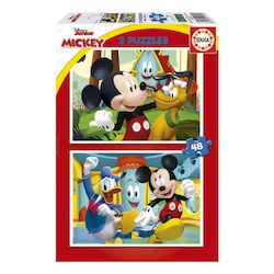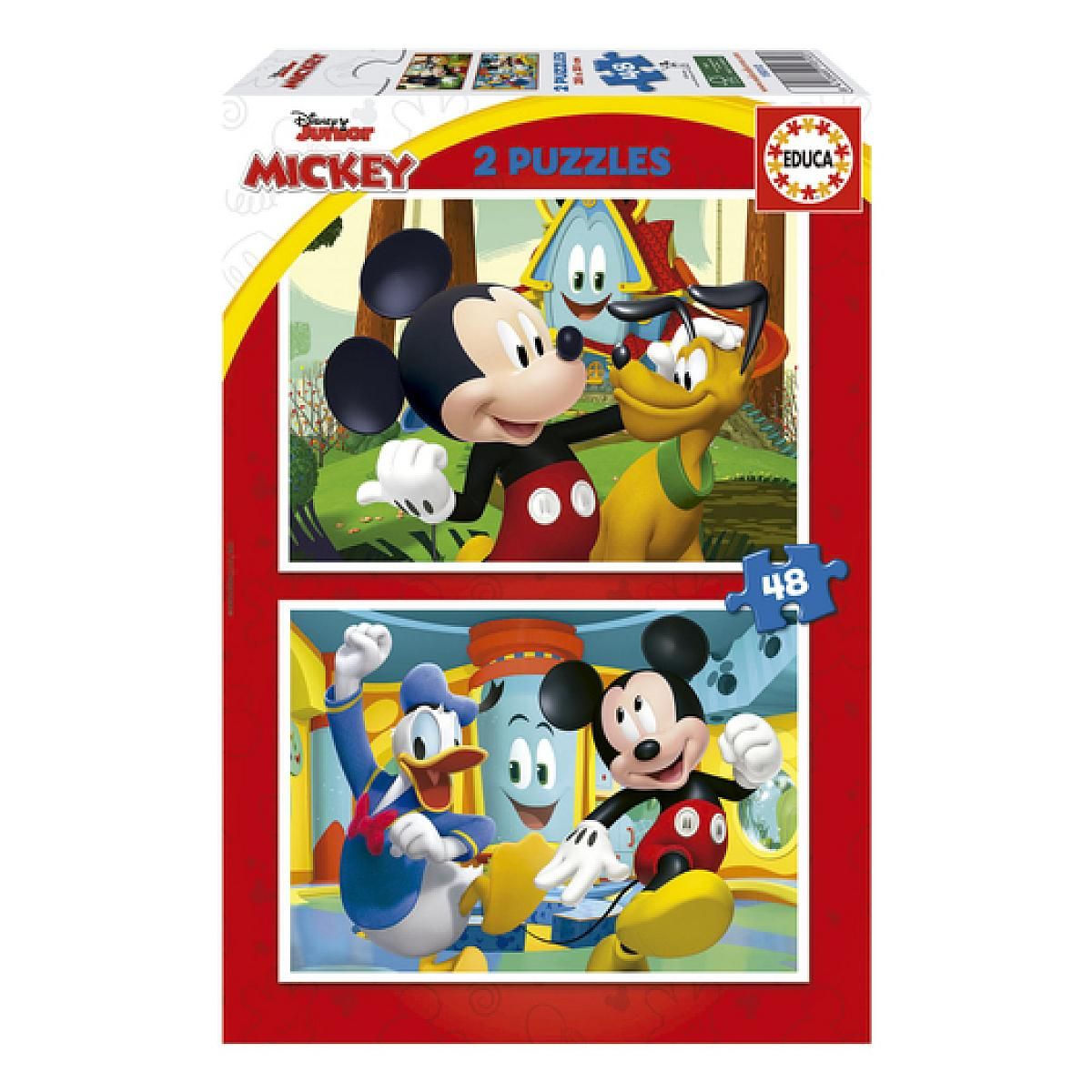 Deux puzzles de 48 pieces chacun, doublez le plaisir. Puzzles inspirés de Mickey Mouse. Puzzle enfants disney. Composées de grandes pièces, parfaitement finies pour une manipulation simple et sûre par les enfants. Les puzzles stimulent la fixation de l'attention ainsi que le développement de la psyc