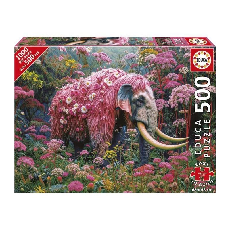 Puzzle - EDUCA - Éléphant Fleuri - 500 pieces - Theme Animaux - Pour enfants a partir de 10 ans